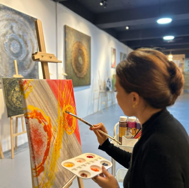 At 11 art space, Ana Lyn Seva’s vibrant paintings bring stories to life, inviting you to own a piece of her journey.